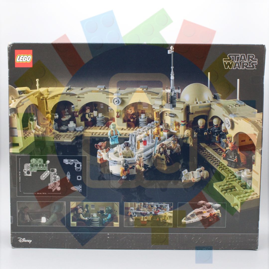 - Build your own Lego Mos Eisley Cantina with removable roof for easy access with 2 attachable buildings, 2 Landspeeders, plus a LEGO® Dewback figure.